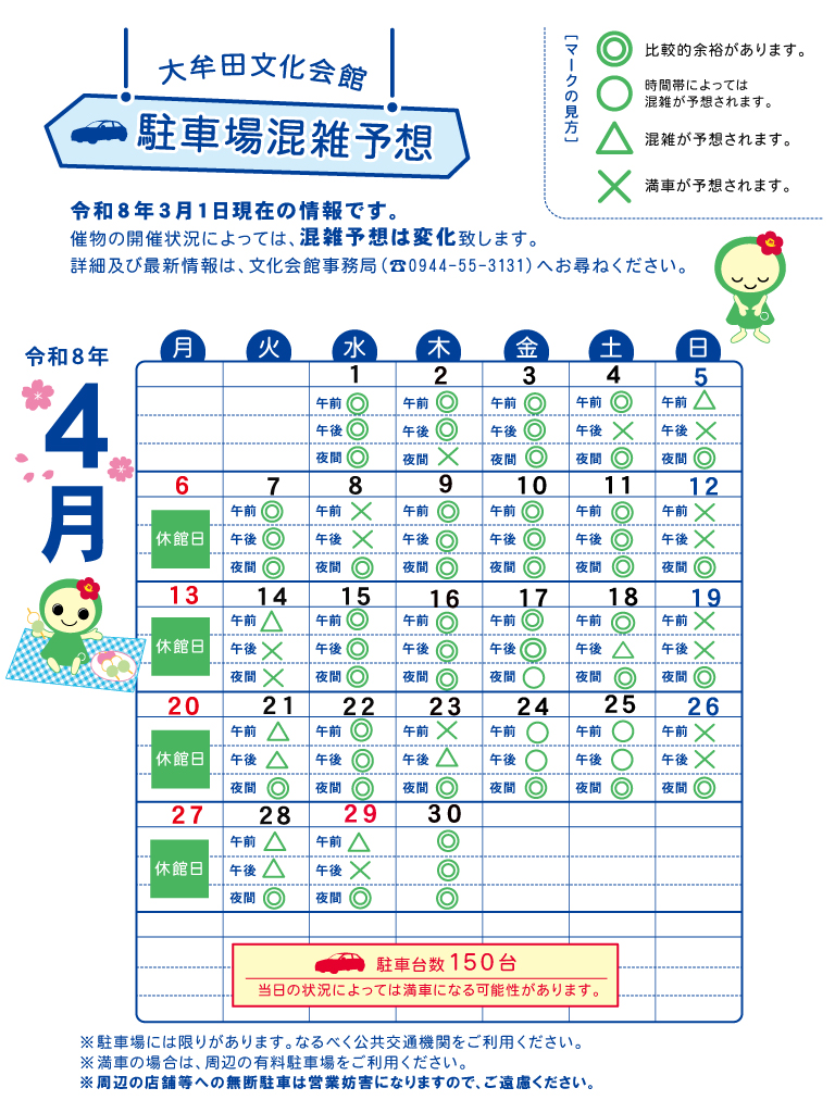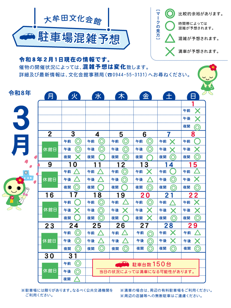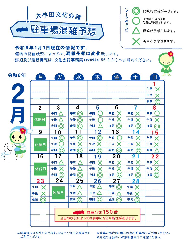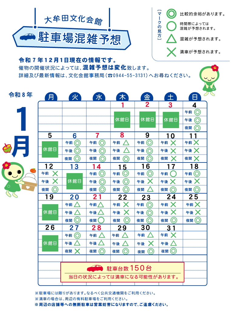 当日の状況によっては、予想と実際の状況は異なる場合がございます。あらかじめご了承ください。(下記カレンダーのクリックで拡大表示されます。)