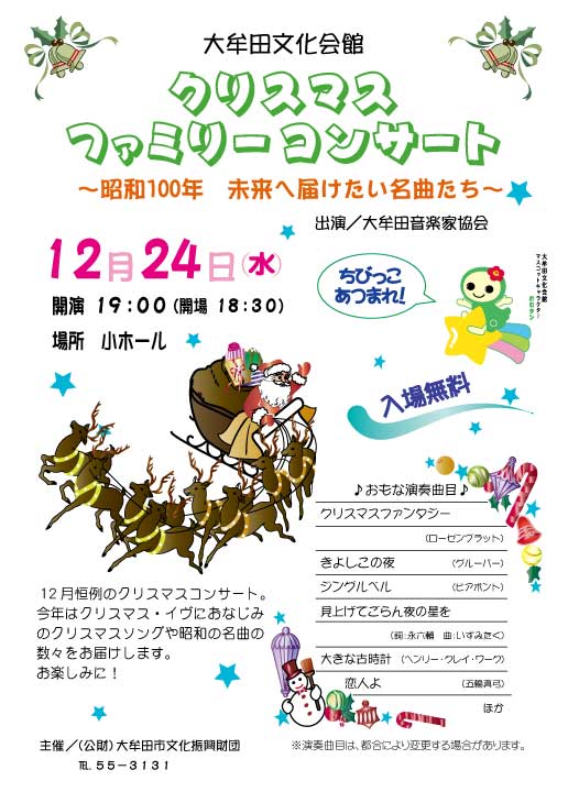 クリスマスファミリーコンサート~昭和100年 未来へ届けたい名曲たち~開催のお知らせ