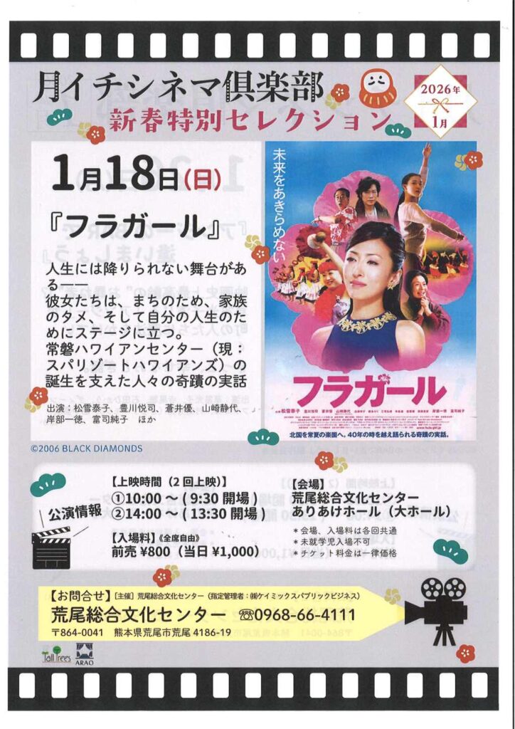 1月18日(日) 月イチシネマ倶楽部『フラガール』(荒尾総合文化センター)