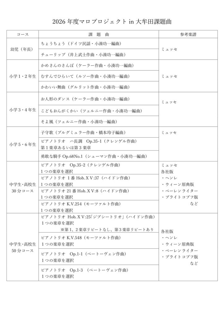 一流の音楽家にアンサンブルレッスンを受けることができる貴重な機会です!
